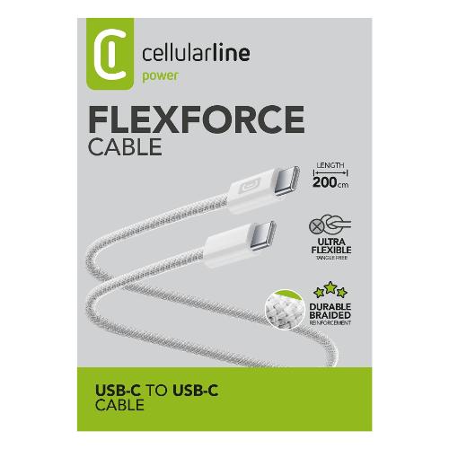 Il cavo FLEXFORCE di Cellularline è la soluzione ideale per chi cerca velocità, affidabilità e resistenza nella ricarica dei propri dispositivi. Compatibile con laptop, tablet e smartphone dotati di porta USB-C, consente di ricaricare alla massima potenza, fino a circa 60W, garantendo prestazioni ottimali anche per i dispositivi più esigenti. Il design innovativo combina un rivestimento in silicone telato, piacevole al tatto, con una struttura estremamente flessibile che evita fastidiosi grovigli. Grazie alla telatura rinforzata, il cavo offre una resistenza superiore all’usura quotidiana.