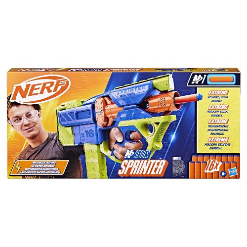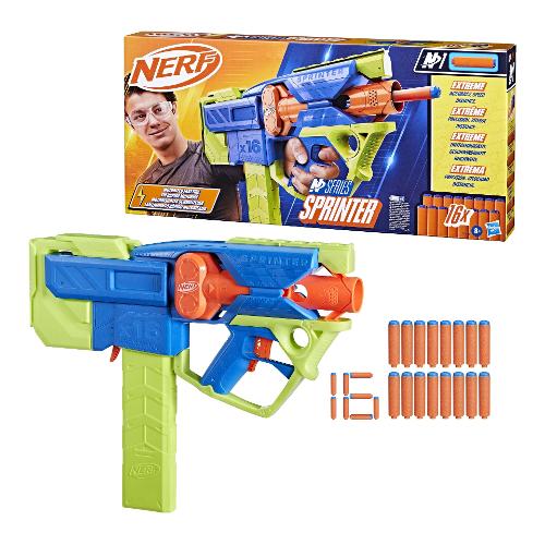 Il marchio Nerf porta la sfida a un livello superiore con i blaster lancia-dardi ad alte prestazioni Nerf N Series e i dardi Nerf N1! Se già avevi le capacità di un giocatore Nerf provetto, ora hai anche il blaster e i dardi perfetti per ottenere un vantaggio superiore nelle sfide al chiuso e all'aperto. Dai creatori dei dardi in gommapiuma, il marchio Nerf lancia la nuova generazione nel campo dei dardi in gommapiuma con i dardi N1 della Nerf N Series, che offrono PRECISIONE, VELOCITÀ e DISTANZA ESTREME! Il blaster Sprinter con dardi Nerf N Series è dotato di una veloce modalità di lancio motorizzata! Accendi il motore di questo blaster automatico e fai volare i dardi! Il blaster Sprinter include un caricatore rimovibile da 16 dardi e 16 dardi Nerf N1 in gommapiuma. I blaster Nerf N Series sono compatibili esclusivamente con i dardi Nerf N Series N1. Si raccomanda di indossare un paio di occhiali protettivi (non inclusi).