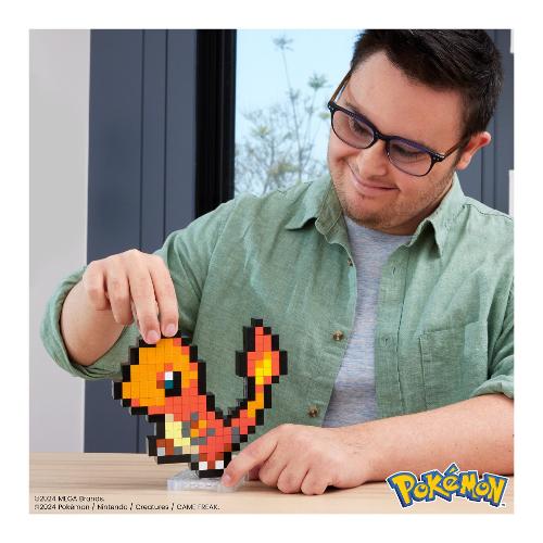 Decora i tuoi spazi e costruisci alcuni dei tuoi Pokémon preferiti con MEGA. Costruisci Charmander un mattoncino alla volta e crea un'action figure di ispirazione retrò grazie a Pokémon Pixel Art con licenza ufficiale. Esponilo sulla scrivania o montalo a parete per mostrare la tua passione per i Pokémon. Abbinalo ad altri Pokémon della serie, ognuno in vendita separatamente.