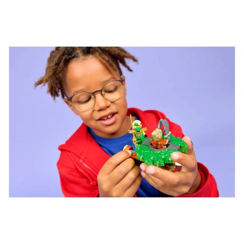 I bambini e le bambine dai 6 anni in su adoreranno costruire questo giocattolo da battaglia Lloyd contro Spinner Mostro della Terra LEGO® NINJAGO® (71850) e ricreare le scene della stagione 4 del programma televisivo NINJAGO La rivolta dei draghi.Una volta costruito, i bambini premono il pulsante del lanciatore per lanciare lo spinner giocattolo in una rapida rotazione e guardano se le 2 parti del Potere degli Elementi volano via quando colpisce il bersaglio. Questo piccolo set LEGO contiene 2 minifigure: Lloyd con una spada e il malvagio Mostro della Terra, che può essere inserito all’interno dello spinner giocattolo. I bambini potranno divertirsi per ore con le battaglie tra il bene e il male insieme ai personaggi di NINJAGO. La gammadi set da costruzione e giocattoli d’avventura LEGO NINJAGO include mech, draghi e templi dettagliati in modo che i fan possano ricreare fantastiche azioni ninja. I bambini possono costruire con confidenza utilizzando l’app LEGO Builder: ingrandisci,r uota in 3D e tieni traccia dei progressi con istruzioni digitali facili da seguire.