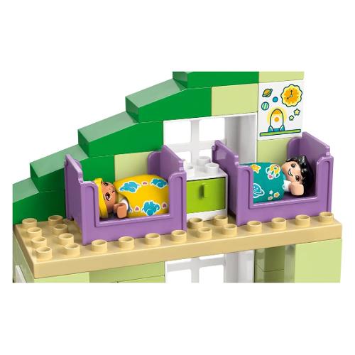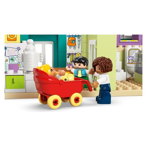 I bambini dai 2 anni in su possono divertirsi con il gioco di finzione esplorando le routine familiari con questo kit di costruzione Casa familiare moderna 3 in 1 con personaggi (10470). Con 4 personaggi - 2 genitori, un bebè e un bambino - questogiocattolo interattivo consente ai bambini di divertirsi con attività di apprendimento sociale ed emotivo mentre giocano con la famiglia nella loro abitazione. Questo giocattolo versatile consente di sviluppare le capacità motorie complesse e offre tan te possibilità creative mentre i bambini e le bambine costruiscono 3 modelli utilizzando gli stessi mattoncini LEGO® DUPLO®. Possono configurarlo come un appartamento su un piano o come una “casa delle bambole” a 3 o 5 piani con un giardino sul tetto e accessori come un lettino e un hotel per gli insetti. Questo giocattolo per il gioco di ruolo per i bambini include tanti accessori per casa delle bambole che i bambini riconosceranno dalle loro abitazioni, come un frigorifero, un WC e un passeggino. Queste funzionalità stimoleranno ore di narrazione per i bambini, i quali svilupperanno creatività, impareranno a conoscere le routine ed esploreranno i diversi ruoli in una famiglia.