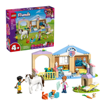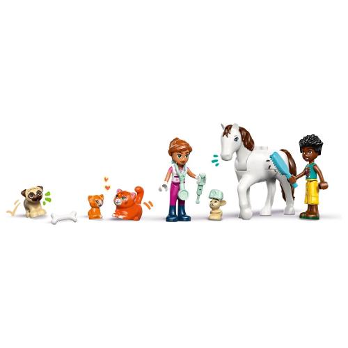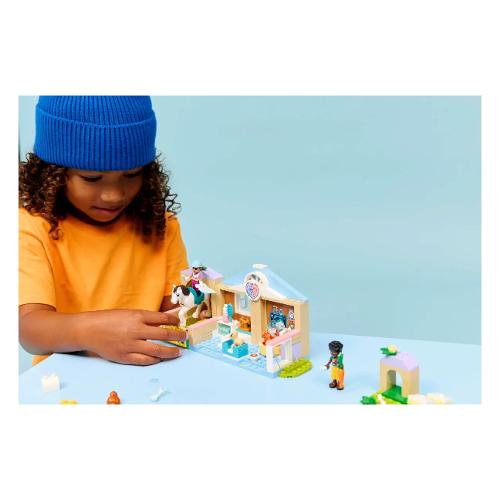 ncoraggia i bambini dai 4 anni in su a costruire le loro storie con il playset Clinica veterinaria LEGO® Friends (42696) per i bambini e le bambine. Il dettagliato set veterinario giocattolo contiene tutto ciò di cui il tuo bambino ha bisogno pergiocare e prendersi cura degli animali. Contiene una stalla dei cavalli, una sala per le visite, letti per gli animali, cibo, attrezzature veterinarie, un parco giochi per gli animali e altro ancora. Il set giocattolo include le mini-doll di Leo e Vale ria, più un cavallo, un cane, un coniglietto e 2 gatti. Accessori a tema veterinario come una siringa, un termometro e una clipboard e una penna ispirano il gioco di finzione. Per il cavallo, ci sono una sella, del fieno, una spazzola, una carota,acqua, popò e un casco per un cavallerizzo. Questo set è un regalo divertente per i bambini in età prescolare che amano i playset degli animali. I set LEGO 4+ contengono utili elementi per l’avvio rapido: pezzi più grandi che aiutano i bambini a inizia re. Con l’app LEGO Builder, i bambini possono divertirsi a costruire, ingrandendo e ruotando i set con istruzioni 3D e tenendo traccia dei loro progressi.