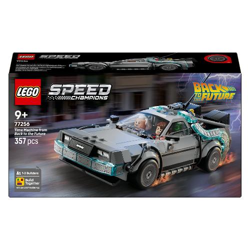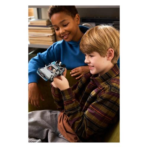 Il kit del modello di auto Macchina del tempo di Ritorno al futuro LEGO® Speed Champions (77256) consente ai bambini dai 9 anni in su di costruire, esporre e ricreare l’azione dell’iconico franchise cinematografico. Quest'auto giocattolo in mattoncini include molti dei famosi dettagli del modello dei film popolari. Costruisci questa iconica auto con il parafulmine e la targa californiana del primo film e quindi ricostruiscila nella sua versione volante del secondo film con Mr. Fusion, una targa arancione e ruote oblique. Entrambe le versioni sono dotate di prese d’aria posteriori, cockpit, condensatore di flusso e calcolatore temporale. Per tanto valore di gioco in più, il playset include anche 2 minifigure dei film: Doc Brown e Marty McFly da posizionare al volante. Un regalo fantastico per bambini e adulti nostalgici, che potranno costruire ogni set di gioco con confidenza utilizzando l'app LEGO Builder, che consente loro di ingrandire, ruotare in 3D e monitorare i progressi con istruzioni digitali facili da seguire.
