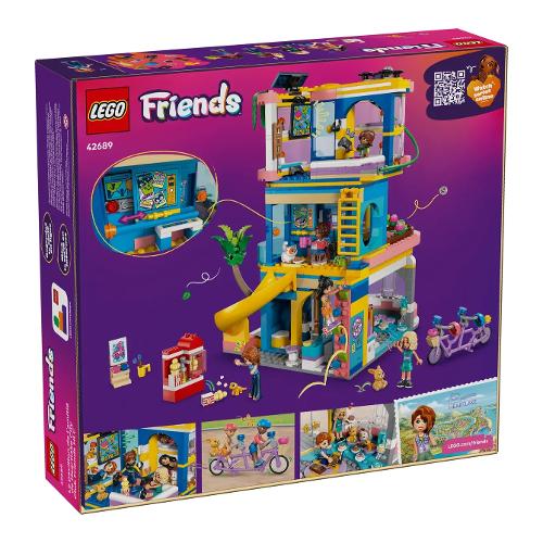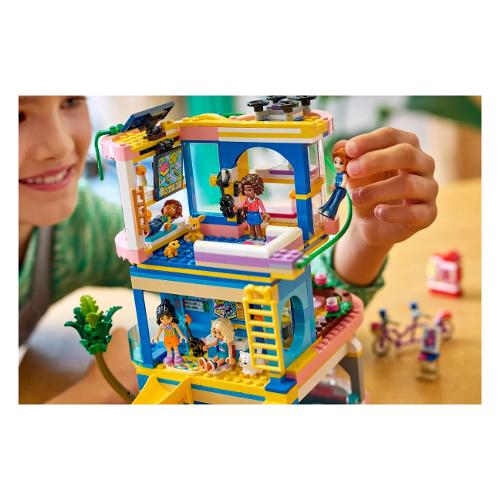 Lascia correre l’immaginazione mentre i bambini dagli 8 anni in su esplorano il set giocattolo Casa dell’amicizia di Heartlake City LEGO® Friends (42689). I bambini e le bambine possono creare missioni segrete e storie infinite con questo set per bambini. Tante avventure ti attendono sulla teleferica, sullo scivolo e sulla parete da arrampicata. Risolvi un mistero usando il computer nascosto e il drone. Prenditi cura degli animali domestici, mettiti a dipingere al cavalletto o fai spuntini in cucina. Qualunque sia la loro passione, i bambini possono esplorarla qui! Questo set costruibile contiene 5 mini-doll, più un gatto, un geco e un coniglietto. Ci sono anche tanti accessori per stimolare l’immaginazione dei bambini, tra cui ciotole per animali e acqua, una macchina per popcorn, una TV da gaming con controller, un frigorifero, ciambelle, fragole, cialde e altro ancora. Questo kit di costruzione per bambini è un regalo divertente per i bambini e le bambine che amano i giocattoli ele attività creative. Amici e familiari possono collaborare con la modalità Build Together nell’app LEGO Builder, dove tutti si divertono a costruire parte del set utilizzando i propri dispositivi.