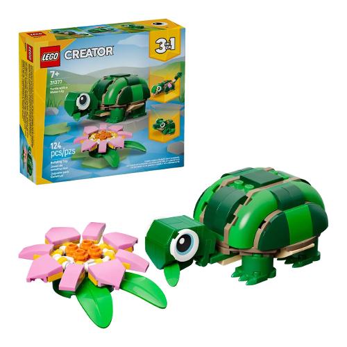 Il set costruibile Tartaruga con un fiore di ninfea LEGO® Creator 3 in 1 (31377) consente ai bambini dai 7 anni in su di raccontare storie di animali creative. Questo simpatico animale giocattolo per i bambini e le bambine offre 3 diverse opzioni di costruzione con lo stesso set di mattoncini. I bambini possono scegliere di costruire una tartaruga giocattolo con testa e bocca snodabili, e un bellissimo fiore di ninfea rosa. La tartaruga può quindi essere ricostruita in un camaleonte con testa e coda snodabili o in una rana con bocca mobile. Una volta terminato il gioco, ogni modello può essere esposto come divertente decorazione. Questo set LEGO Creator 3 in 1 ispirerà l’immaginazione dei bambini ed è un fantastico regalo per i bambini ele bambine che amano il gioco di finzione e gli animali selvatici. E con l’app LEGO Builder, i bambini vivranno un’avventura di costruzione facile e intuitiva. Possono ingrandire e ruotare i loro set utilizzando le istruzioni per la costruzione 3D, ten ere traccia dei loro progressi e salvarli in un unico posto. I modelli non possono essere costruiti simultaneamente.