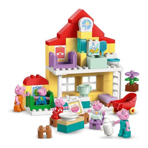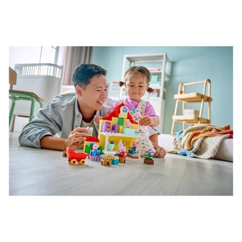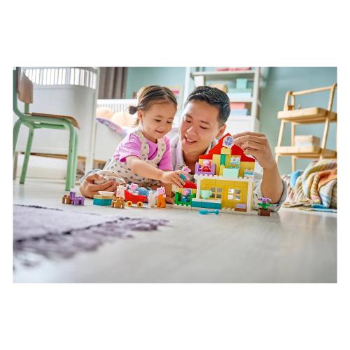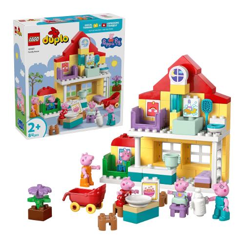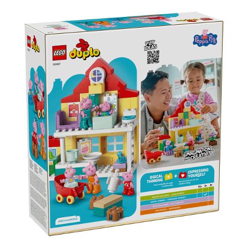 I più piccoli ricreano le routine insieme ai loro personaggi TV preferiti con il kit di costruzione Villetta familiare Peppa Pig (10467). Questo regalo per bambini e bambine dai 2 anni in su include la famiglia completa con i 5 personaggi di PeppaPig, tra cui Evie Pig. Come nello show, questa casa giocattolo LEGO® DUPLO® a 2 piani ha stanze separate per George e Peppa Pig, una cucina, un bagno e un soggiorno. Questo giocattolo di finzione incoraggia i bambini e le bambine a ricreare le scene de llo spettacolo e le routine da casa, come prepararsi per andare a letto o fare colazione in famiglia. Con i 5 personaggi LEGO DUPLO di questo set da costruzione, Mamma Pig, Papà Pig, George, Evie e Peppa Pig, i bambini possono sviluppare la loro intelligenza emotiva mentre immaginano di avere un nuovo familiare. Ricco di accessori per il gioco di fantasia, questo giocattolo educativo consente ai piccoli costruttori di immaginare di prendersi cura del bebè portandolo a fare una passeggiata nelpasseggino, dandogli da mangiare con il biberon o facendogli il bagnetto.