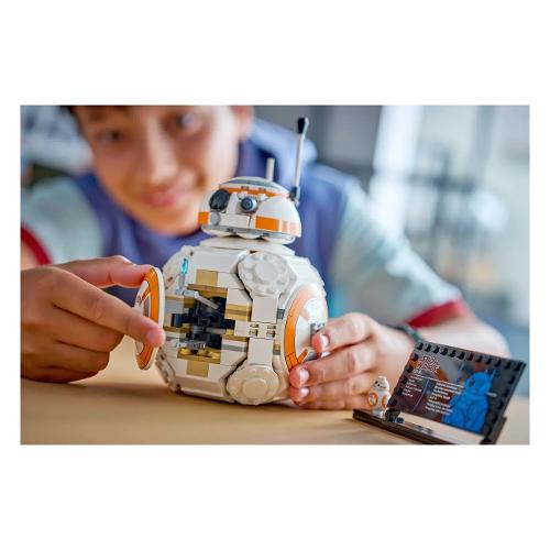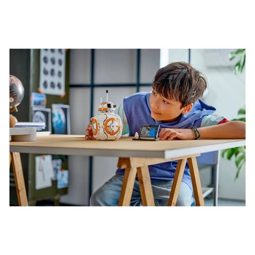 Scatena la tua carineria al massimo con questo straordinario droide astromeccanico LEGO® Star Wars™ BB-8™ per bambini. Usa i mattoncini LEGO per catturare i dettagli autentici dell’iconico droide, proprio come in Star Wars: Il Risveglio della Forza. Muovi BB-8 su una superficie piana per far girare la testa in direzioni casuali. Apri lo sportello sul corpo di BB-8 per rivelare il “braccio accendino”, come quello che usò per dare l’OK a Finn.