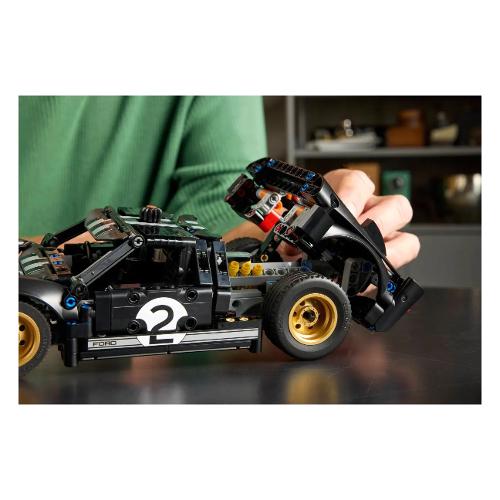 Conquista la vittoria e celebra un’icona del mondo dei motori con questo modello di Auto da corsa Ford GT40 MKII 1966 LEGO® Technic per adulti (42223). Gli amanti delle auto, i fan delle corse e gli appassionati di costruzioni dai 18 anni in su possono rivivere lo spirito della gara endurance più prestigiosa del mondo con questa versione realistica di un’iconica auto vintage. Divertiti a esplorare le caratteristiche dettagliate del set. Usa la manopola sul tetto dell’auto per sterzare. Dai un’occhiata alle portiere apribili e ammira la livrea nera e argento ispirata all’auto vincente della vita reale. Apri la cover del motore per rivelare il motore V8, quindi usa la leva all’interno per aprire il cofano. Dopo averlo costruita, potrai esporre la tua auto da corsa in qualsiasi stanza o ufficio. Soddisfa la tua passione per i kit da costruzione di veicoli ad alte prestazioni con la gamma di auto da collezione LEGO Technic per adulti. Divertiti a costruire con l’app LEGO Builder, ingrandisci e ruota il modello con le istruzioni 3D e salva e tieni traccia dei progressi, il tutto dall’app.
