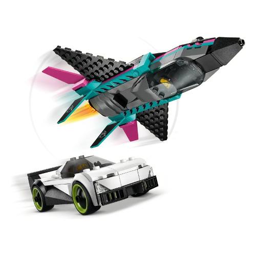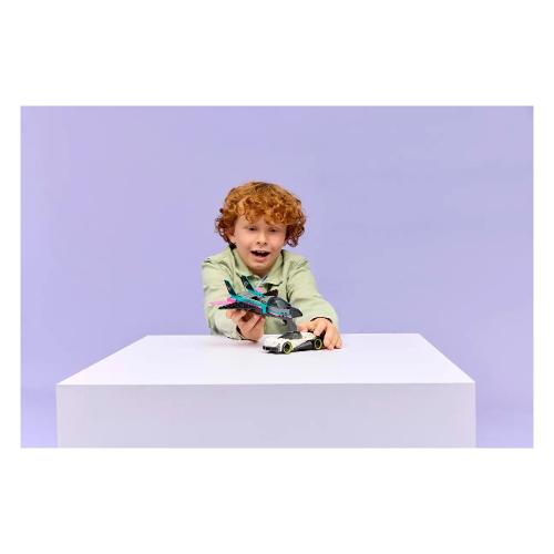 Questo playset con veicoli giocattolo Jet contro Auto sportiva LEGO® City (60489) a doppia funzione include un’elegante supercar e un jet supersonico per tanto divertimento di fantasia. Il jet giocattolo è dotato di ali posteriori, doppie alette verticali e stabilizzatori. I bambini possono usare una leva per azionare i post-bruciatori del jet e aprire il cockpit della supercar per accedere all’interno dettagliato, completo di sedile da corsa. Basta aggiungere le minifigure dei piloti per ore di epica azione di racing. Rendi speciale qualsiasi giornata con questo kit di costruzione con jet e auto: un fantastico regalo per i bambini di 6 anni che amano le auto da corsa e i modelli di aereo. Aggiungi questo set agli altri (disponibili separatamente) della gamma LEGO City per tanta azione cittadina. Rendi ancora più divertente questo set giocattolo LEGO con auto sportiva e jet scaricando l’app LEGO Builder, dove i bambini possono ingrandire, ruotare i modelli in 3D e seguire i loro progressi di costruzione.