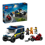 Preparati per emozionanti avventure di evasione con il set costruibile Cellulare della Polizia LEGO® City (60479) per i bambini dai 6 anni in su. Il modello del furgone della polizia è dotato di cabina di guida dettagliata e cella con spazio per 2ladri. I bambini possono usare la motocicletta giocattolo con la sua catena e il gancio per rimuovere la porta della cella. Basta aggiungere l’agente di polizia e 2 minifigure di ladri per un epico gioco di ruolo. Perfetto per i bambini creativi e i fa n dei playset della Polizia di LEGO City, questo kit di costruzione con veicolo della polizia è un fantastico regalo di compleanno o per qualsiasi occasione. Aggiungi questo set ad altri veicoli di emergenza giocattolo LEGO City (disponibili separatamente) per tanta azione e narrazione di storie di fantasia. I bambini possono costruire con confidenza utilizzando l’app LEGO Builder, dove possono ingrandire, ruotare 3D e tenere traccia dei progressi con le istruzioni digitali facili da seguire.