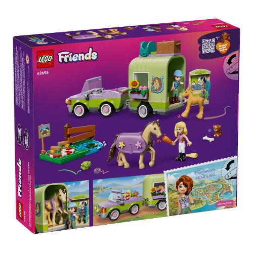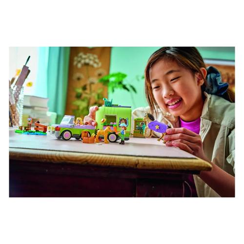 Lascia che i bambini dai 7 anni in su si divertano per ore con il giocattolo costruibile Rimorchio per cavallo e puledro LEGO® Friends (42695). Questo set per gli amanti dei cavalli include 2 mini-doll più un cavallo, un puledro, un cucciolo e unarana. Esplora ogni aspetto della cura degli animali utilizzando gli accessori dettagliati per strigliare i cavalli, trasportarli sul rimorchio e saltare gli ostacoli. I bambini e le bambine possono giocare con questo playset con animali in tanti modi d iversi. Possono creare storie per Autumn e Matilde mentre guidano l’auto. Apri il rimorchio per salutare il cavallo e il puledro. Poi sella il cavallo e fai un giro. Il modello contiene una piccola costruzione secondaria con un’area per il picnic,un cartello, un lago e un ostacolo da saltare. Questo set è un fantastico regalo per gli amanti dei cavalli o un divertente regalo di compleanno per i bambini che amano i playset con animali. Con l’app LEGO Builder, i bambini possono divertirsi con una modalità di costruzione intuitiva, ingrandendo e ruotando i set grazie a istruzioni in 3D, salvare i set e seguire i propri progressi.