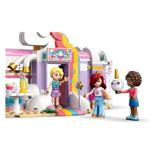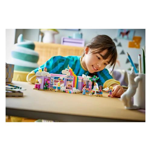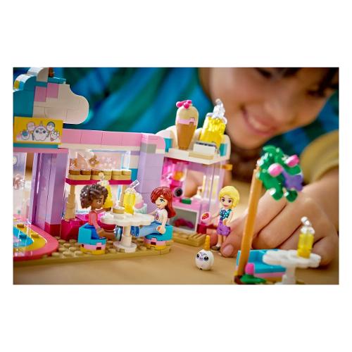 Regala ai bambini dai 6 anni in su una spruzzata di creatività con il playset giocattolo Caffè dei sogni Unicorno LEGO® Friends (42684). I bambini e le bambine possono raccontare le loro storie nella caffetteria giocattolo con unicorno arcobaleno,che include tanti simpatici accessori.Il dettagliato set incoraggia il gioco aperto con 3 mini-doll, torte giocattolo, ciambelle, cialde e biscotti. Ci sono anche graziosi dolcetti da esporre nella vetrina o sulla piattaforma girevole. Crea più possibilità di narrazione di storie con il bar dei succhi di frutta e dei frullati, i posti a sedere interni ed esterni, il registratore di cassa e un peluche di unicorno LEGO. I giovani fan di Friends possono divertirsi con il gioco creativo con la proprietaria del caffè Iza e i clienti Paisley e Aliya. Questo set è un fantastico regalo di compleanno per i bambini e le bambine che amano gli unicorni o che amano il gioco di finzione. Con l’app LEGO Builder, i bambini possono divertirsi con un’avventura di costruzione intuitiva, ingrandendo e ruotando i set grazie a istruzioni per la costruzione in 3D, salvare i set e seguire i propri progressi.