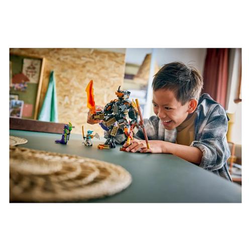 I bambini e le bambine dai 7 anni in su adoreranno costruire questo giocattolo ninja Mech della missione di Cole e drago Zane LEGO® NINJAGO® (71854) e ricreare le scene della stagione 4 dello show televisivo NINJAGO La rivolta dei draghi. Questo playset contiene un mech giocattolo con testa, braccia, spalla, dita, gambe e caviglie snodabili, oltre a un cockpit per posizionare una minifigure al suo interno. Il mech è dotato di 3 armi: una spada, un bastone e un blaster a molla con 2 frecce, chei bambini possono scambiare con le armi del set La battaglia del drago ninja Riyu (71855), disponibile separatamente). Questo giocattolo NINJAGO contiene anche 3 minifigure: Cole con un martello, drago Zane con una spada e un Mostro Acido con un bastone per le battaglie. La gamma di set da costruzione LEGO NINJAGO per i bambini include mech, draghi e templi in modo che i fan possano ricreare l’azione ninja. I bambini possono costruire con confidenza utilizzando l’app LEGO Builder: ingrandisci,ruota in 3D e tieni traccia dei progressi con istruzioni digitali facili da seguire.