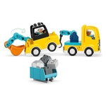 Accendi la creatività del tuo piccolo con il regalo Veicoli da cantiere 3 in 1 LEGO® DUPLO® Town (10475) per i bambini dai 2 anni in su. I momenti di gioco sono pieni di divertimento ricostruibile mentre i bambini si concentrano sulla creazione di6 diverse opzioni di costruzione. I 22 mattoncini di questo set LEGO DUPLO consentono di realizzare 3 coppie di camion: una pala caricatrice con benna ribaltabile che riempie il cassone ribaltabile di mattoncini, una scavatrice e un’autogrù con un brac cio girevole, oppure una piattaforma elevatrice a forbice e un secondo carro attrezzi con un gancio più piccolo per sollevare i mattoncini. Incoraggia i piccoli costruttori a usare la loro creatività, la capacità di risolvere i problemi, la perseveranza e le capacità motorie fini per sperimentare diverse soluzioni e realizzare originali giocattoli a forma di camion. Sono inclusi anche due personaggi di operai giocattolo in modo che i bambini possano usarli per guidare e azionare i veicoli. I set LEGO DUPLO Town aiutano i più piccoli a dare un senso al mondo mentre costruiscono, esplorano e giocano con scene familiari.
