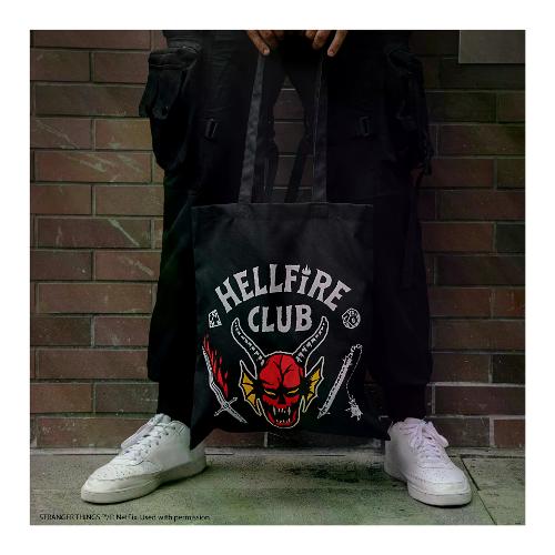 Unisciti ai ranghi del misterioso Hellfire Club e porta con te il loro simbolo di ribellione e resilienza con questa borsa tote Hellfire Club.