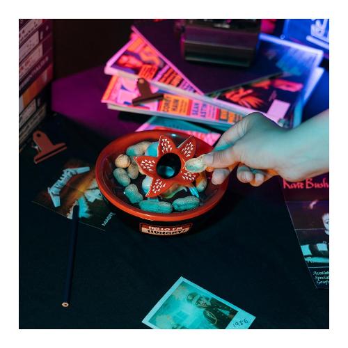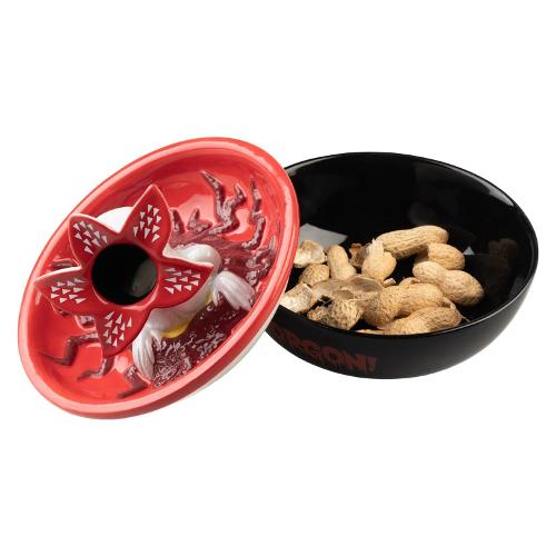 Ciotola snack decorativa ispirata al Demogorgone, con coperchio 3D e scritta “Demogorgon”. Un must per i veri fan di Hawkins e per chi ama aggiungere un tocco geek alla casa. Il coperchio ha un foro centrale che collega l’interno alla parte superiore: puoi mettere le bucce o i resti all’interno senza sporcare. Ideale per arachidi, popcorn o olive