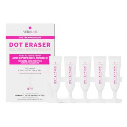 Veralab Dot Eraser Gel Viso Imperfezioni e Acne 5 Fiale 2ml è un trattamento mirato contro brufoli, sfoghi e imperfezioni cutanee, anche legati all’acne. Grazie alla combinazione di acido salicilico e bakuchiol, due principi attivi clinicamente testati, svolge un’azione purificante, cheratolitica, esfoliante e seboregolarizzante.