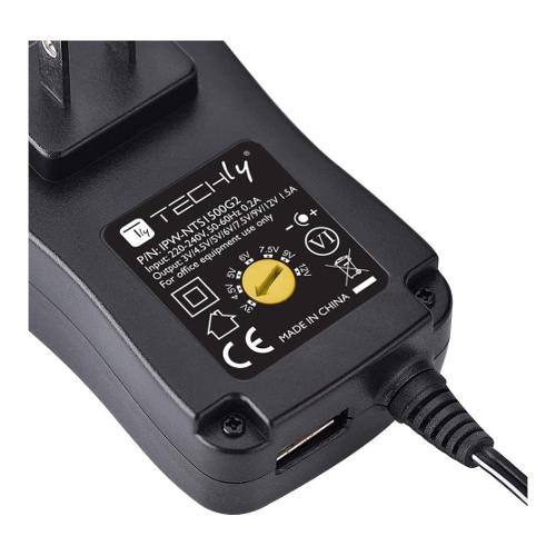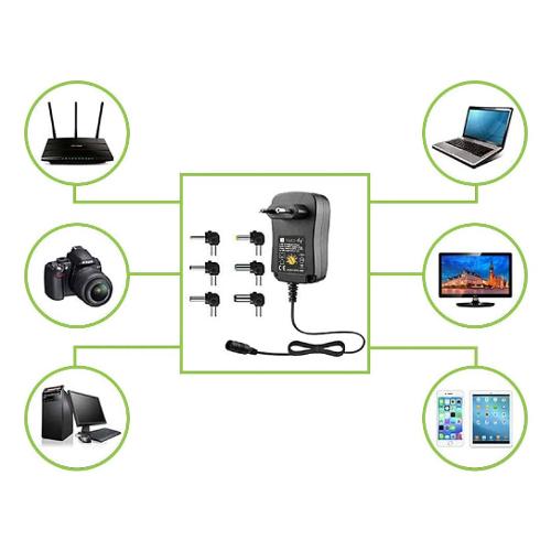Grazie ai sei connettori CC di uscita intercambiabili di cui è dotato (2.5 x 5.5mm, 2.1 x 5.5mm, 4.0 x 1.7mm, 3.5 x 1.35mm, 5.0 x 2.1mm, 5.5 x 1.7mm) e alle sette regolazioni di tensione, da 3V a 12V, soddisfa perfettamente molteplici esigenze di alimentazione e può sostituire una varietà di caricabatterie con un caricatore unico. Provvisto di una porta USB 5V 1 Ampere, perfetta per la ricarica di smartphone e altre periferiche, la lunghezza del cavo è di 120 cm;