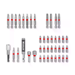Il set M-CASE da 42 pezzi di Einhell è adatto a tutti i comuni mandrini e portainserti di avvitatori e trapani a batteria disponibili in commercio. Questo set completo di inserti contiene 24 inserti da 25 mm PH1 / 2x PH2 / PH3 / 2x PZ1 / 2x PZ2 / 3x T10 / 3x T15 / 3x T20 / 3x T30 / 4x T25 e 14 inserti da 50 mm PH1 / PH2 / PZ1 / PZ2 / 2x T10 / 2x T15 / 2x T20 / 2x T25 / 2x T30. Gli inserti sabbiati grigi sono realizzati in robusto acciaio S2 e hanno un anello colorato. Inoltre, il set di utensili Einhell include due bussole da 8 e 10 mm, anch'esse sabbiate in grigio per garantire lunga durata e prestazioni elevate. Il portainserti a cambio rapido da 60 mm con attacco E 6.3 in acciaio al carbonio e manicotto metallico è dotato di una funzione di cambio rapido con un potente magnete. Ciò consente di sostituire gli inserti in modo rapido e semplice, garantendo una presa sicura durante l'uso. Un altro punto di forza del set Einhell è il supporto magnetico estensibile in robusto acciaio la cui lunghezza può essere regolata da 80 a 118 mm. Il manicotto lucidato per la guida delle viti garantisce un lavoro preciso, anche in punti difficili da raggiungere. La pratica scatola portaoggetti nello speciale design Einhell offre spazio organizzato per tutti gli accessori. Il coperchio trasparente consente di vedere il contenuto a colpo d'occhio, mentre la robusta chiusura a clip autobloccante garantisce una chiusura sicura della scatola. In questo modo, tutti i componenti del set di utensili sono sempre a portata di mano.
