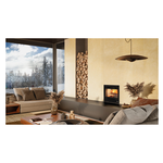 L'Inserto 70 EOS, a legna ventilato, mette in primo piano lo spettacolo delle fiamme e trasforma il fuoco in un vero elemento d’arredo grazie all'ampio vetro panoramico. Il focolare in ghisa e Nordiker esalta la luminosità, mentre la maniglia a scomparsa dona essenzialità e stile.