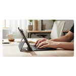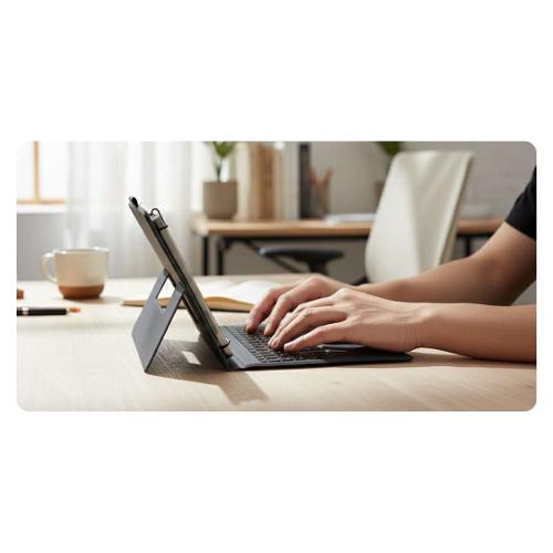 Cover universale per tablet fino a 13" con tastiera integrata wireless. I quattro ganci interni regolabili bloccano il tablet creando un ancoraggio perfetto. Alimentata da una batteria la litio.