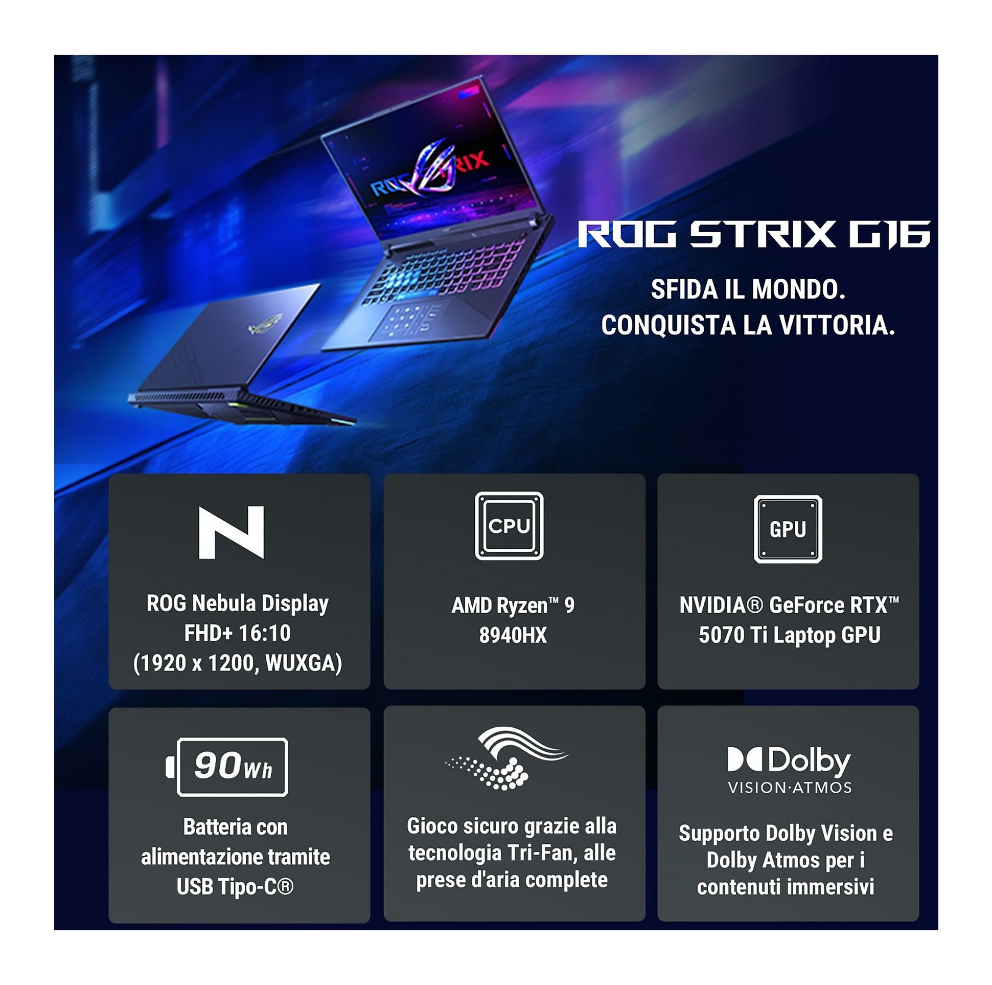La Stix G16 vanta una GPU Laptop NVIDIA GeForce RTX 5070 Ti, che ti garantisce framerate e visuali incredibili in tutti i giochi più recenti.