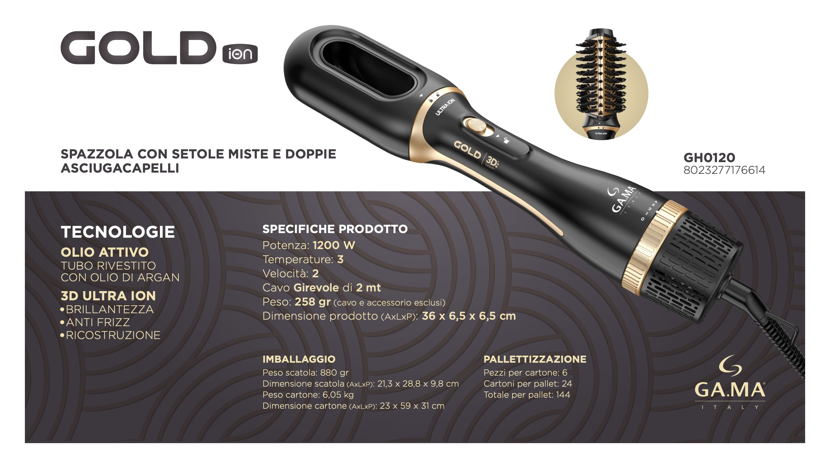 Modellatore capelli GOLD iOn 2in1 Black e Gold GH0120 1200W