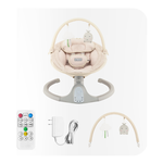 Il dondolo KENANI SAND è l'ultima versione elegante e colorata del nostro dondolo più venduto KENANI, dotato di cinture di sicurezza a 5 punti, modulo Bluetooth e display LCD. Con i suoi giocattoli sulla barra, il tuo piccolo sarà sicuramente contento.
