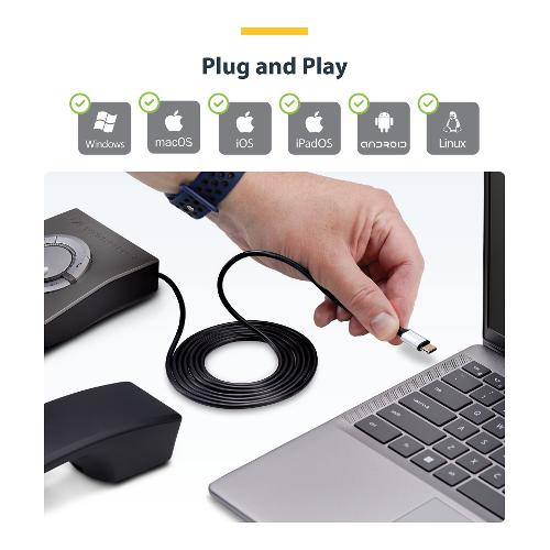 L'adattatore da USB-C a RJ9 è essenziale per collegare una cornetta o cuffie telefoniche tradizionali a laptop, desktop e dispositivi mobili. Questo versatile cavo adattatore consente l'integrazione senza problemi di apparecchiature legacy con tecnologie moderne.
