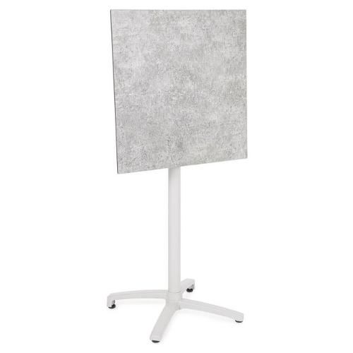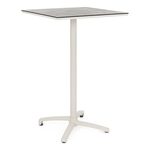 Struttura in alluminio verniciata a polvere (Poliestere). Piano in hpl (5mm), laminato ad alta pressione, con supporto in alluminio (15mm). Viteria in acciaio inossidabile. Piano pieghevole, base impilabile comprensiva di extra peso 3kg. Da assemblare