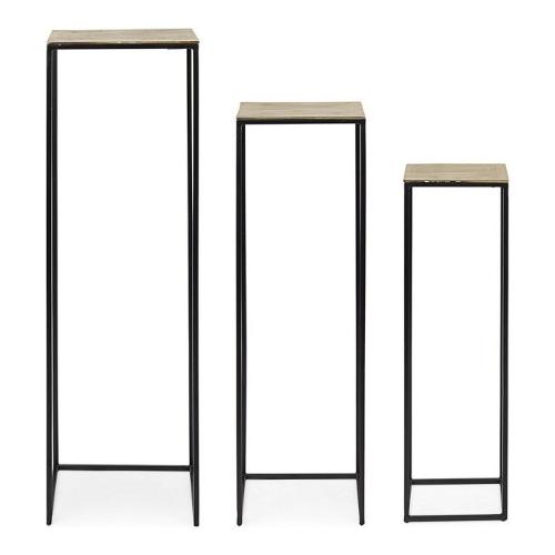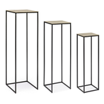 Set colonnine porta piante con piano in alluminio placcato ottone antico: 25x25x85 cm; 30x30x110 cm; 35x35x115 cm
