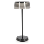 Policarbonato, ABS e metallo, paralume in policarbonato. Lampada led, luce dimmerabile, ricaricabile con cavo usb 1 mt incluso. Tasto on/off touch. Per uso interno ed esterno, IP44