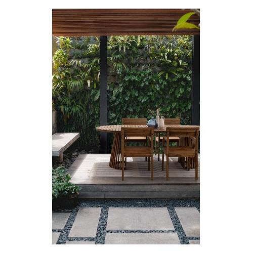 Legno di acacia FSC 100%. Finitura a olio. Viteria in acciaio galvanizzato. Base da assemblare
