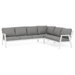 Struttura in alluminio verniciata a polvere (Poliestere). Cuscini sfoderabili con tessuto idrorepellente Olefin (100% polipropilene). Il divano 2p e 3p sono interscambiabili, possono essere posizionati sia a destra che a sinistra dell'angolare. Viteria in acciaio inossidabilie. Piedini regolabili. Laterali da assemblare