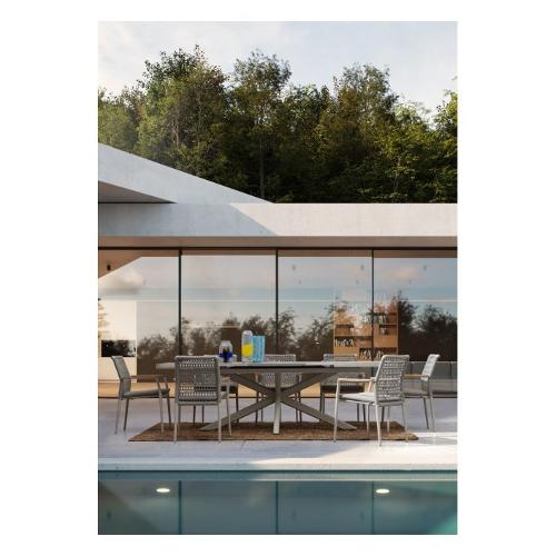 Struttura in alluminio verniciata a polvere (Poliestere). Braccioli con inserti in teak. Intreccio in corda Olefin. Cuscino sfoderabile con tessuto idrorepellente Olefin (100% polipropilene). Impilabile. Non vendibile in Germania, austria, svizzera, paesi bassi, lussemburgo