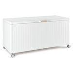 Struttura in alluminio verniciato a polvere (Poliestere). Pannelli in acciaio galvanizzato. Ruote in plastica con sistema di bloccaggio. Maniglia in alluminio con applicazione di film in pvc (foglio laminato ad alta tecnologia) stampato in 3d effetto legno venato. Apertura facilitata con due pistoni a gas. Viteria e cerninere in acciaio inossidabile. Da assemblare