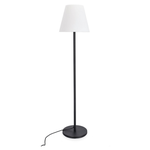 Struttura e base in metallo, paralume in pe. Per inserire la lampadina, serve ruotare e svitare il paralume. Lamp.: E27 20W led, non inclusa. Tasto on/off. Lunghezza totale cavo colore nero 2 mt. Distanza tra lampada e spina: 2 mt. Dotato di presa schuko. Per uso interno ed esterno, IP44. Da assemblare