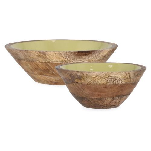 Insalatiera Legno Set 2 pz (25x10 e 30x14 cm) THARA Naturale e Giallo 0550937