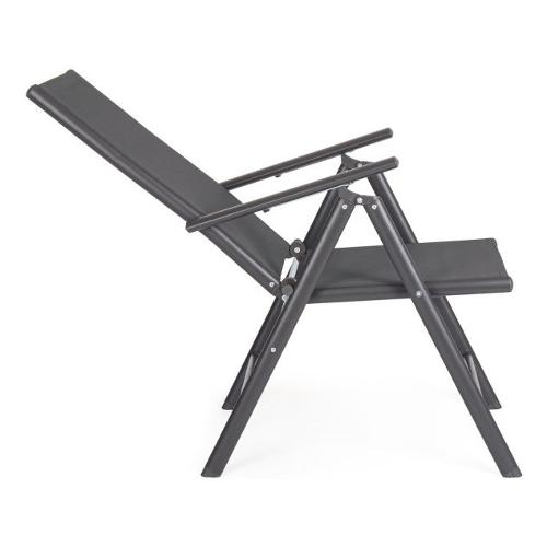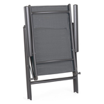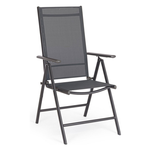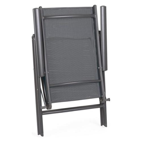 Struttura in alluminio verniciata a polvere (Poliestere). Seduta e schienale in textilene 2x1,Reclinabile in 7 posizioni. Pieghevole