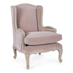 Struttura in legno di mango massiccio. Rivestimento in cotone, effetto velluto ed imbottitura schienale in Poliestere. Cuscino seduta sfoderabile con imbottitura in schiuma poliuretanica e Poliestere. Sospensione con cinghie elastiche
