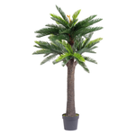 Plastica (pe), fil di ferro, vaso in pe con cemento all'interno, fibra di palma. Con trattamento di protezione dai raggi uv. Per uso interno ed esterno.