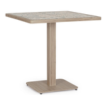 Piano e gamba centrale in alluminio verniciato a polvere (Poliestere). Piano con mattonelle in porcellana smaltata (provenienza Spagna). Base in acciaio trattato per esterno (e-coating) e verniciato a polvere (Poliestere). Piedini regolabili. Viteria in acciaio inossidabile. Da assemblare