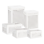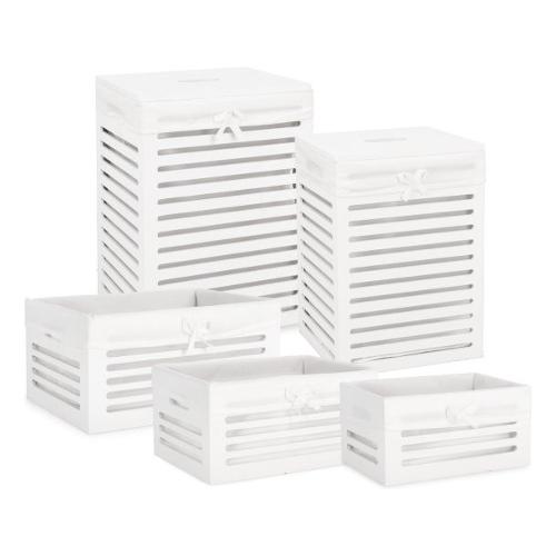 Set biancheria composto da 2 contenitori con coperchio (35x25x41 e 40x30x51 cm) e 3 ceste rettangolari aperte (30x20x15, 35x25x17 e 40x30x20 cm)