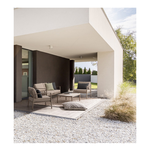 Struttura in alluminio verniciato a polvere (Poliestere) effetto legno. Cuscini seduta e schienale sfoderabili con tessuto idrorepellente Spunpoly (100% Poliestere). Piedini regolabili. Gambe tavolino (viteria in acciaio inossidabile) da assemblare