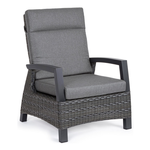 Struttura in alluminio, verniciata a polvere (Poliestere), intreccio in fibra sintetica (multi-misura). Schienale reclinabile in libera posizione. Cuscini sfoderabili con tessuto Olefin (100% polipropilene). Viteria in acciaio inossidabile. Schienale da assemblare