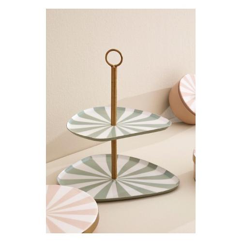 Alzata (27x31cm) decorativa 2 piani DONYA Verde e Bianco 0187168