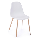 Gambe in acciaio verniciate effetto legno naturale. Seduta in polipropilene (PP). Gambe da assemblare