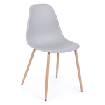Gambe in acciaio verniciate effetto legno naturale. Seduta in polipropilene (PP). Gambe da assemblare
