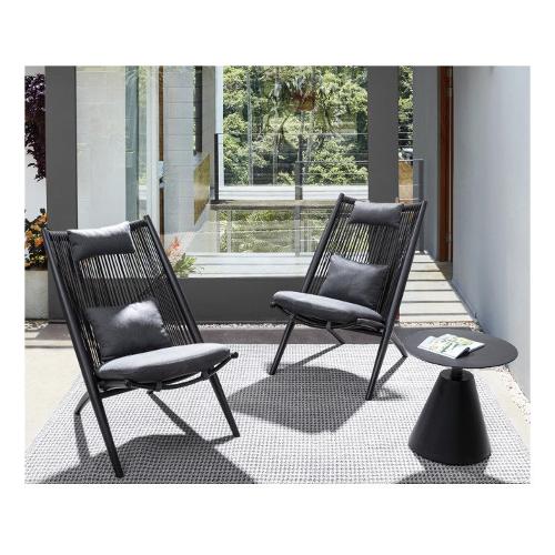 Struttura in alluminio verniciato a polvere (Poliestere), intreccio con corde in Poliestere (idrorepellenti, resistenti raggi uv). Cuscini sfoderabili in tessuto idrorepellente Poliestere (280gr/m2). Da assemblare