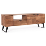 Struttura in legno di acacia, schienali e fondo cassetti in compensato. Frontali ante e cassetti intarsiati e lavorati a mano. Finitura acrilica protettiva. Maniglie e gambe in acciaio. Gambe da assemblare